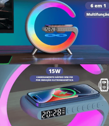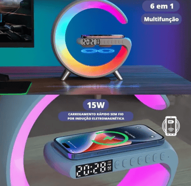 G Speaker Luminária de Mesa Rgb Caixa De Som Carregador Por Indução Despertador Rádio Relógio